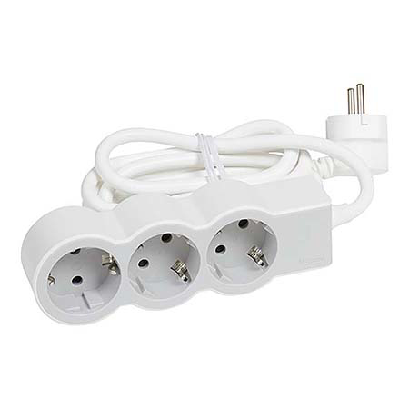 Jedna utičnica je postavljena pod uglom od 90°, što omogućava priključenje transformatora ili glomaznijih punjača bez blokiranja ostalih utičnica. Kućište je izrađeno od kvalitetne termoplastike bele boje (RAL 9003), sa mat završnom obradom i otpornosti IK04. PVC kabl bele boje, preseka 3×1.5 mm², dužine 1.5 m, pruža optimalan domet za većinu unutrašnjih instalacija.