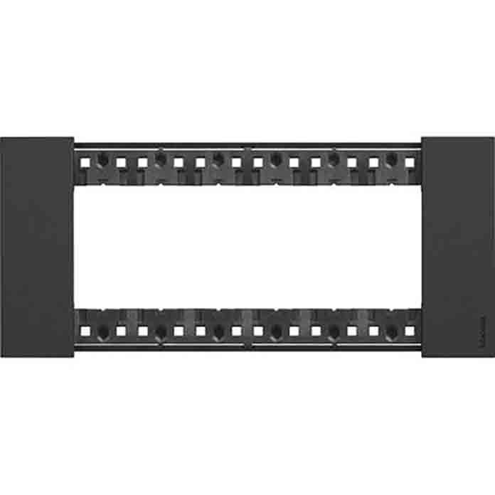 BTicino Living Now KA4806KG je crna dekorativna pločica/okvir (cover plate) za Living Now seriju, u formatu 6 modula (6M), namenjena za unutrašnju ugradnju. Living Now dizajn je kompaktan i prepoznatljiv, sa preciznim geometrijama koje daju moderan i čist završni izgled instalacije.