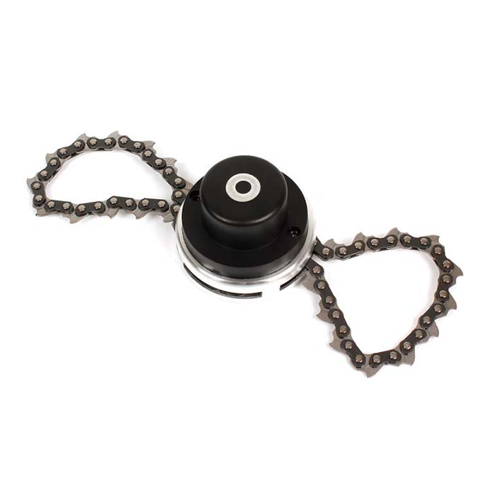 Glava za benzinski trimer sa lancem, oznake 78200176, namenjena je za snažno i efikasno uklanjanje guste trave, korova, šiblja i lakšeg niskog rastinja. Zahvaljujući lancima od čelika, omogućava agresivnije sečenje u odnosu na standardne najlonske ili nož-glave.