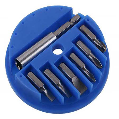 Komplet bitova FESTA, šifra 18430, sastoji se od 7 bitova smeštenih u praktičnu okruglu plastičnu kutiju sa otvorom koji omogućava jednostavno izvlačenje željenog bita. Set je namenjen za hobi i kućnu upotrebu, kao i za lakše montažne i servisne radove.