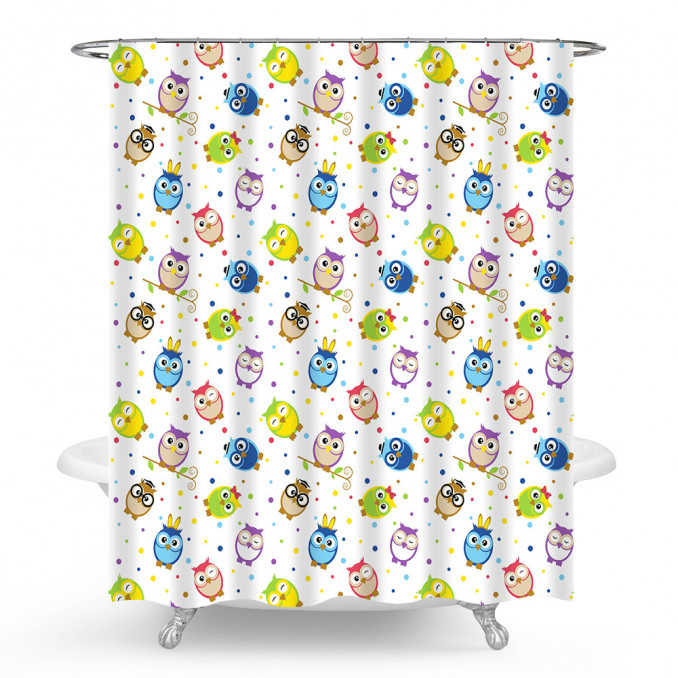 Kupatilska zavesa MZ 26 izrađena je od visokokvalitetnog poliestera otpornog na vlagu, buđ i habanje. Dekorisana simpatičnim dezenom malih sova, ova zavesa donosi vedar i razigran izgled svakom kupatilu, uz praktičnu zaštitu od prskanja vode tokom tuširanja.